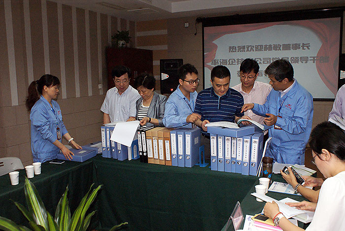?????????領(lǐng)導(dǎo)翻閱泰州倉(cāng)儲(chǔ)的規(guī)章制度,和泰州海企技術(shù)領(lǐng)導(dǎo)交流發(fā)展規(guī)范心得。