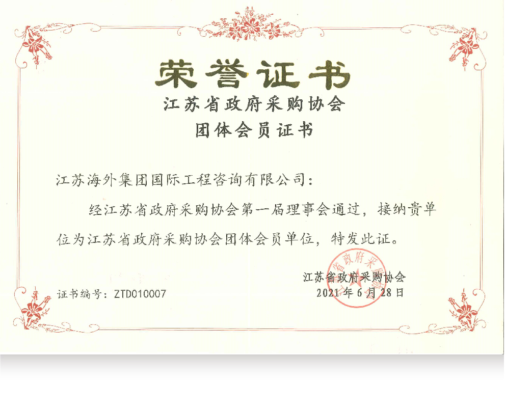 江蘇省政府采購(gòu)協(xié)會(huì)團(tuán)體會(huì)員證書