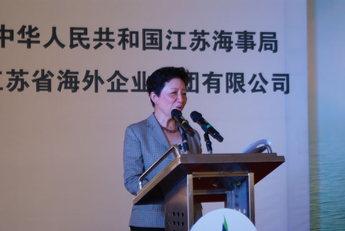 ????????技術(shù)公司總經(jīng)理兼海企港華公司董事長(zhǎng)林敏女士首先向各位嘉賓介紹了加注站的建設(shè)情況。南京市八卦洲水上LNG加注站采用接岸躉船式,通過(guò)棧橋與岸連接,由長(zhǎng)江船舶設(shè)計(jì)院和南京市燃?xì)夤こ淘O(shè)計(jì)院共同設(shè)計(jì),由技術(shù)公司與南京港華燃?xì)夂腺Y的江蘇海企港華燃?xì)獍l(fā)展有限公司自行建造,由中國(guó)船級(jí)社江蘇分社負(fù)責(zé)審圖和檢驗(yàn)。林總對(duì)該加注站的科學(xué)性、先進(jìn)性、安全性做了全面匯報(bào),同時(shí)對(duì)給予關(guān)心和支持該項(xiàng)目的相關(guān)部門(mén)表達(dá)了誠(chéng)摯謝意。活動(dòng)現(xiàn)場(chǎng),中國(guó)船級(jí)社江蘇分社總經(jīng)理范強(qiáng)向海企港華公司頒發(fā)船檢證書(shū)并介紹加注站檢驗(yàn)情況,香港中華煤氣有限公司副總裁紀(jì)偉毅、海企集團(tuán)董事長(zhǎng)楊大偉、江蘇海事局局長(zhǎng)張同斌分別上臺(tái)致辭。楊大偉董事長(zhǎng)對(duì)國(guó)家、省市有關(guān)部門(mén)長(zhǎng)期以來(lái)給予的大力支持和關(guān)心表示衷心感謝,并希望集團(tuán)能為推動(dòng)經(jīng)濟(jì)社會(huì)綠色循環(huán)、低碳發(fā)展出一份力,盡一份責(zé)。