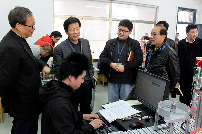 ????????劉維儉校長熱情地接待來賓,介紹了校園布局、辦學(xué)規(guī)模、辦學(xué)歷史等,陪同參觀了駐校企業(yè)常州航天創(chuàng)勝數(shù)控技術(shù)有限責(zé)任公司、數(shù)控實(shí)訓(xùn)車間、機(jī)電樓創(chuàng)新工作室、機(jī)電一體化實(shí)訓(xùn)室、PLC實(shí)驗(yàn)室、PLC實(shí)訓(xùn)室、電氣安裝與維修實(shí)訓(xùn)室、自動控制實(shí)訓(xùn)室等機(jī)電專業(yè)科室。在就坐會議前給予來賓更直接、更直觀的感受。