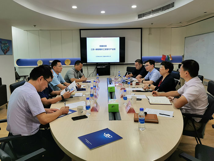 ????????2020年8月11日,省農(nóng)業(yè)農(nóng)村廳對外交流合作處一級調(diào)研員田玉斌、一級主任科員馮得勝、連云港市農(nóng)業(yè)農(nóng)村局對外經(jīng)濟合作中心主任范郁爾、南京農(nóng)業(yè)大學經(jīng)管學院副教授劉愛軍等一行領導來我司調(diào)研江蘇—新陽嘎農(nóng)工貿(mào)現(xiàn)代產(chǎn)業(yè)園棉花、紡紗產(chǎn)業(yè)發(fā)展。