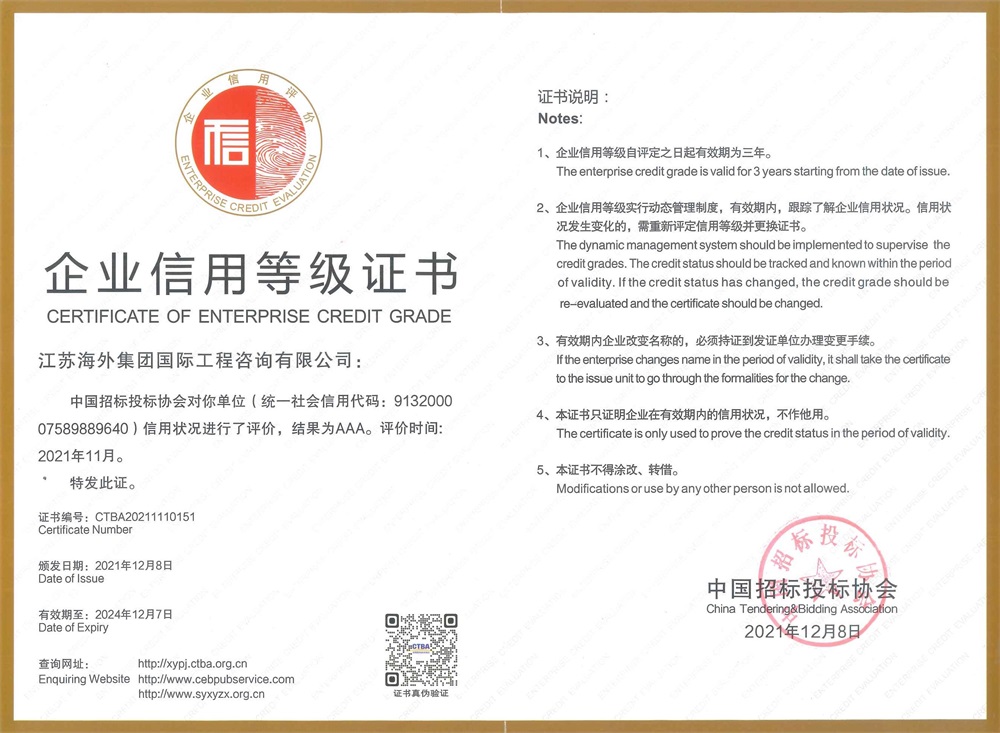 中國招標投標協(xié)會企業(yè)信用等級AAA證書